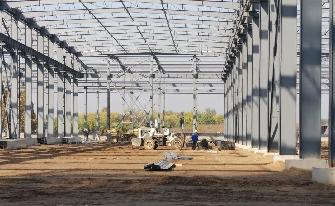 在高新办的积极协调下,用电问题顺利解决,为我们加快进度提供了很大的帮助,目前车间钢结构框架完成,准备安装墙板,办公楼主体封顶,正在进行二次结构施工。